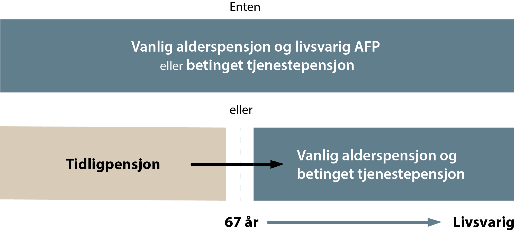 Tar du ut tidligpensjon, mister du rett til å ta ut livsvarig AFP. Du vil i stedet kunne ta ut betinget tjenestepensjon ved 67 år eller senere.